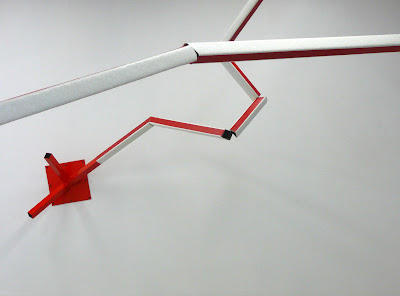 Cette logique du montage n’a pas seulement des incidences sur la manutention des œuvres (installation, transport, démontage), plus profondément, elle permet une permutabilité permanente qui, potentiellement, fait de chaque exposition une possibilité d’évolution ou de recombinaison des sculptures. La plupart des œuvres qui sont montrées à l’H du Siège ont été précédemment exposées ailleurs, mais selon d’autres configurations, si bien que ce qui se donne à voir est à la fois différent et identique. Comme les mots d’un discours, les éléments plastiques utilisés sont des monades qui, en étant réagencées, produisent des configurations inédites qui prolongent et approfondissent les états antérieurs de l’œuvre. L’absence de transition que nous avons relevée précédemment, l’aboutissement par aboutement de la sculpture produit donc une possibilité de mutation interne de chacune des œuvres. Même des titres comme Dialogue de sourds ou Sur le bout de la langue tentent de dire l’impossibilité de claire communication. Du sol au mur, du blanc au rouge, du plastique au métal, du volume à la ligne, les formes butent mais un dialogue, fût-il heurté et lacunaire, s’élabore néanmoins. La progressivité plastique (dégradé, modelage, passage, etc.) absente dans l’économie de chaque sculpture permet, comme par symétrie, une progression de chaque œuvre vers une nouvelle occurrence. La contiguïté sans continuité (des composants de chaque sculpture) produit une continuité sans contiguïté (c’est-à-dire sans co-présence) de chaque sculpture à elle-même, d’un état à un autre.